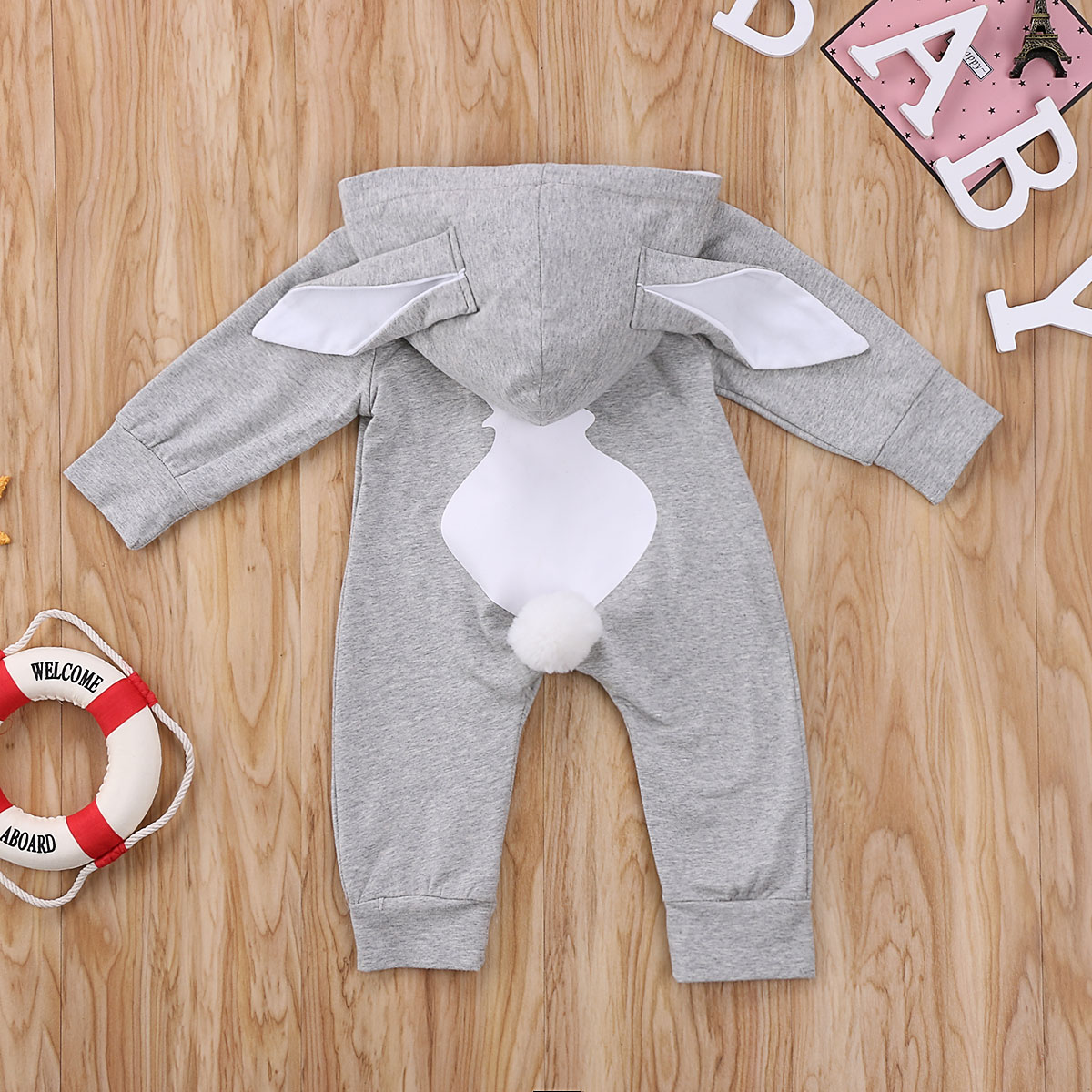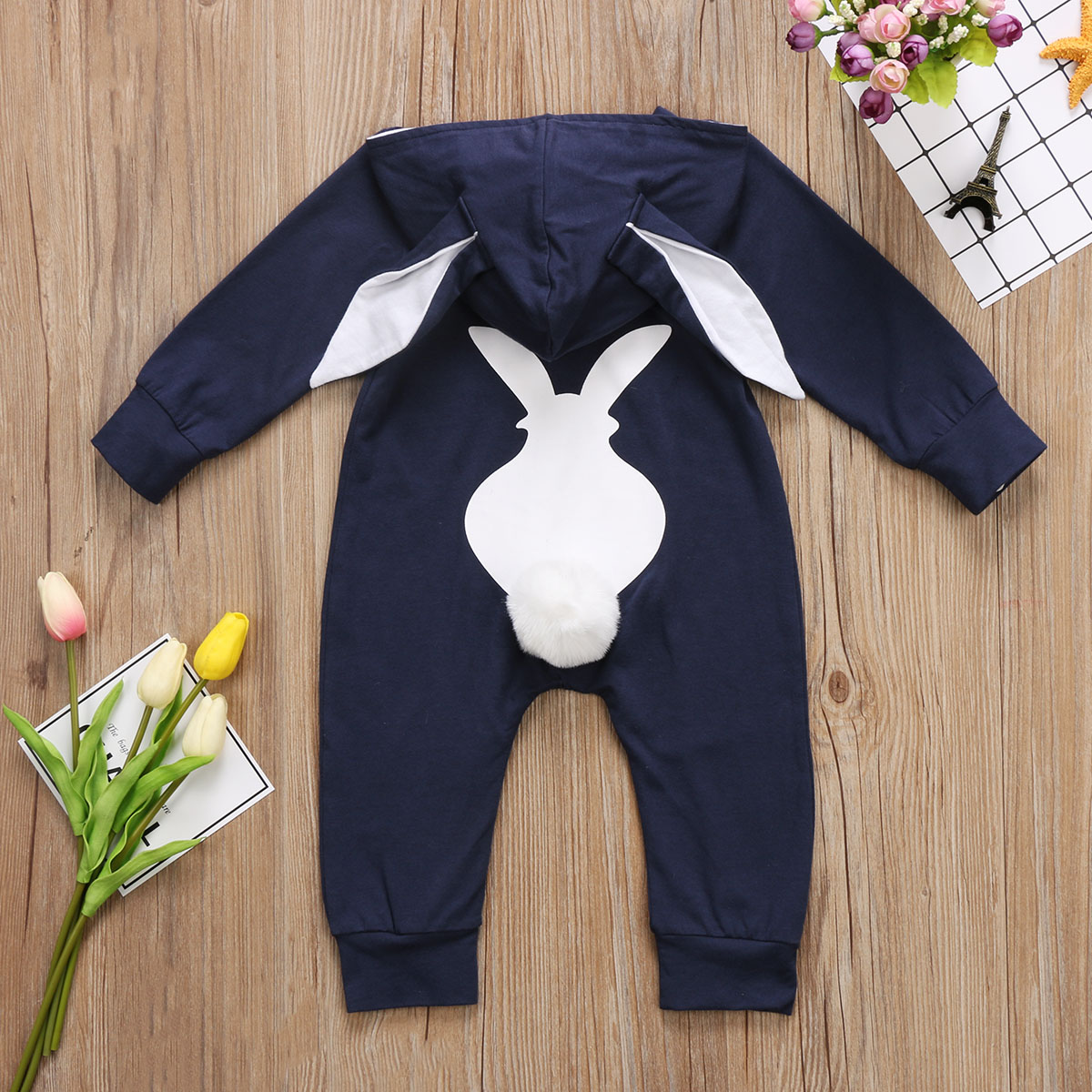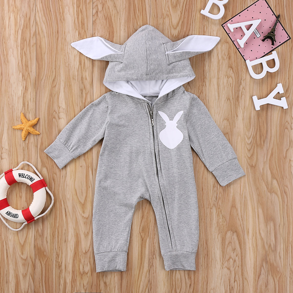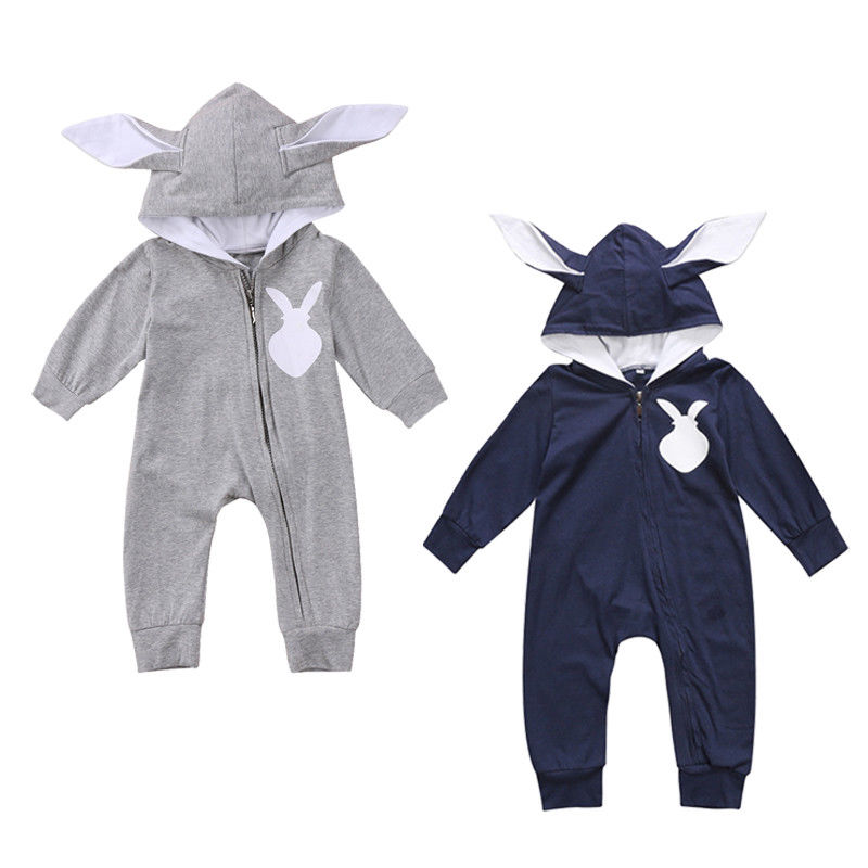 Barboteuse queue de lapin zippée à manches longues pour bébé unisexe